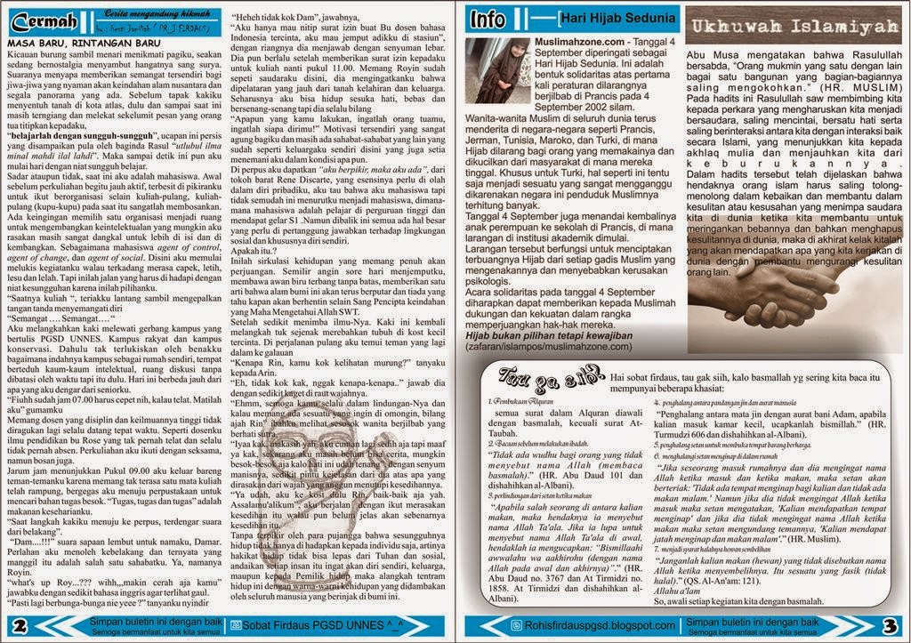 ini, Sabtu 28 September 2013 di depan Auditorium PGSD FIP UNNES. Buletin ini memang